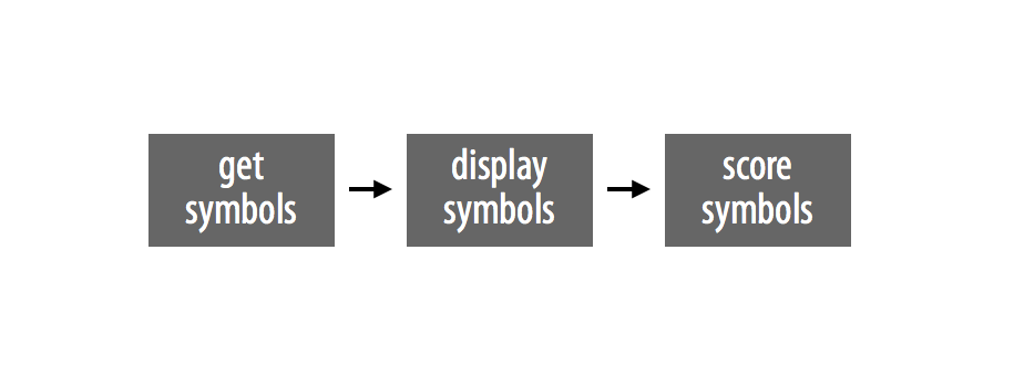 One way to subdivide a program is into a series of sequential steps. The play function takes the approach, shown in Figure 7.1. First, it generates three symbols (step 1), then it displays them in the console window (step 2), and then it scores them (step 3):